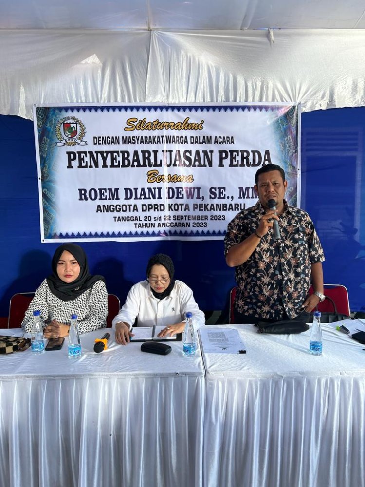 JAGOK.CO - PEKANBARU - Anggota DPRD Kota Pekanbaru, Roem Diani Dewi dari Fraksi Demokrat, melakukan penyebarluasan peraturan daerah Kota Pekanbaru.