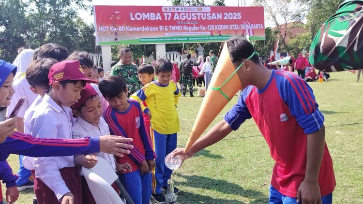 Satgas TMMD Reguler ke-125 Kodim 0735/Surakarta gelar lomba 17 Agustus di Karangasem, Laweyan, meriahkan HUT RI ke-80 penuh kebersamaan.